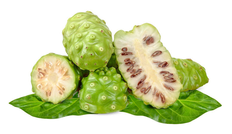 노니는 일 년 내내 자라는 열대 식물로 수십 개의 꽃에서 단 하나의 열매만 맺기 때문에 매우 귀한 과일입니다. 노니에는 198가지 이상의 영양 성분과 100가지 이상의 약리 성분이 함유되어 있다고 합니다.